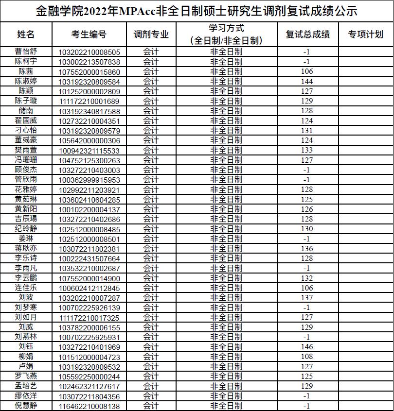 bv1946伟德官网2022年MPAcc非全日制硕士研究生调剂复试成绩公示