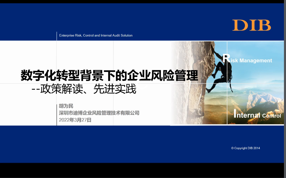 最后,胡为民列举了大型央企四位一体的大内控体系、世界500强上市公司内控评价信息化实践以及大数据、人工智能在风险监测中的应用,突出强调了数字化转型背景下企业风险控制的必要性。