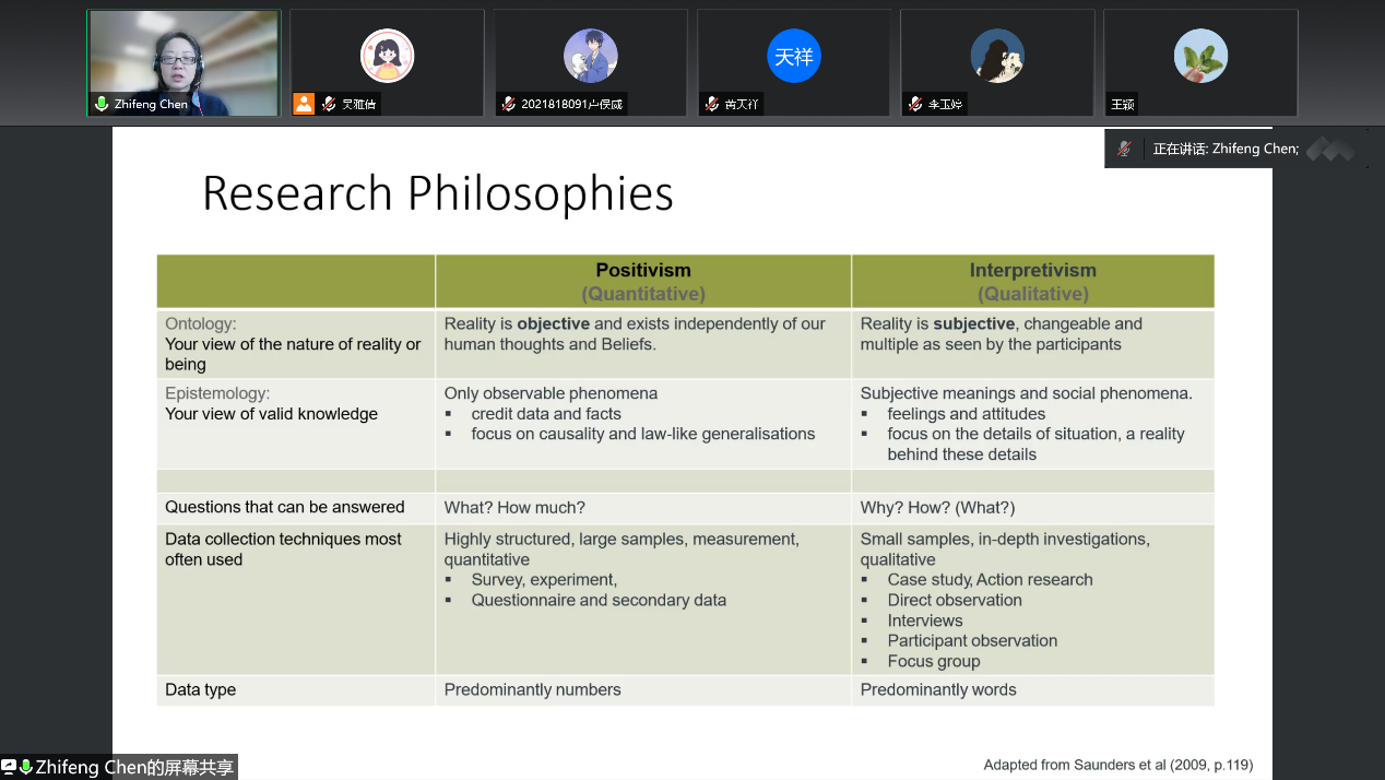 2022年5月6日- 27日,英国南安普顿大学商学院会计系陈之峰老师应邀来我们开展系列学术报告,就文献读写、研究方法论、科研项目申请、科研论文合作等话题进行授课和交流。报告由bv1946伟德官网副院长王翌秋主持,bv1946伟德官网近百名师生参加。