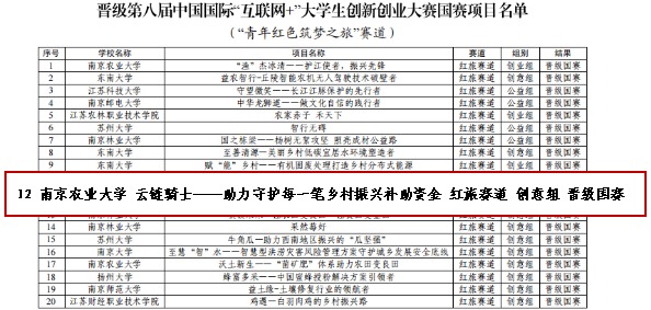 近日,江苏省“互联网+”大学生创新创业大赛组委会公布了我省推荐全国总决赛各赛道项目名单,我们项目“云链骑士——助力守护每一笔乡村振兴补助资金”成功晋级国赛,实现了我们在“互联网+”赛事成绩上的新突破。