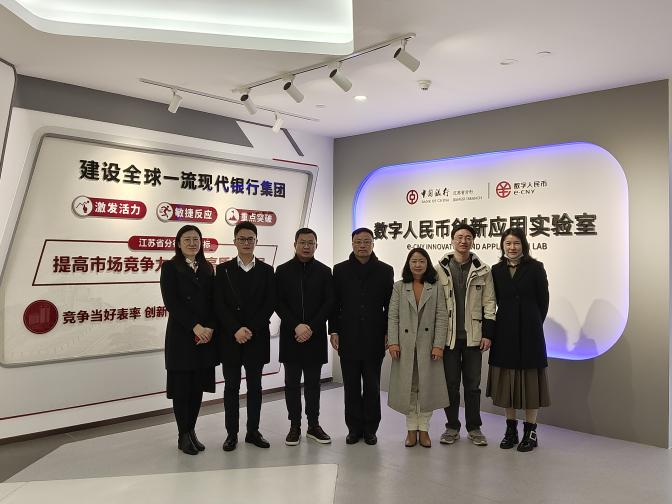 2月15日上午,bv1946伟德官网院长张龙耀、党委副书记朱珠、副院长王翌秋、金融系副主任盛天翔一行,赴中国银行江苏省分行开展数字人民币方面的考察交流。中国银行南京分行个人数字金融部总经理高丽娜、副总经理姚赟、城南支行行长张鹏等出席活动。