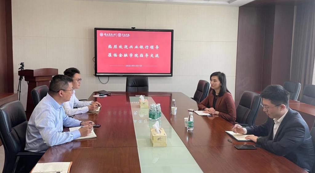 5月9日,兴业银行南京分行樊洁、查宇辰一行到访bv1946伟德官网,双方就校企合作开展座谈交流,bv1946伟德官网院长张龙耀、党委副书记朱珠、辅导员陆佳俊参加座谈。