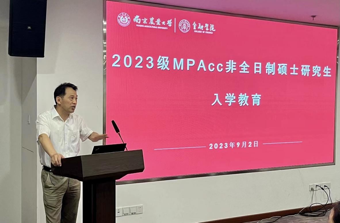 首先致辞的是会计学科点长王怀明教授。王教授剖析了近年来会计行业就业市场,以及全国各高校MPAcc研究生招生情况。认为会计专业研究生就业形势严峻,随着人工智能与大数据的发展,会计行业可能面临被替代的风险,因此王教授希望同学们培养多学科交叉学习意识,增强分析能力和决策能力,提高前瞻性,做一名高级会计师。王教授讲述了研究生与本科生之间的区别,强调研究生阶段实行导师负责制,导师是硕士研究生培养的第一负责人,建议同学们与导师经常联系,主动、积极与导师沟通学位论文选题写作。王教授希望MPAcc非全日制硕士研究生处理好四个关系:一是要平衡好工作和学习关系;二是要兼顾理论知识学习和实践能力培养;三是要平衡好自身专业与非专业之间的关系;四是要处理好同门和非同门之间的关系。