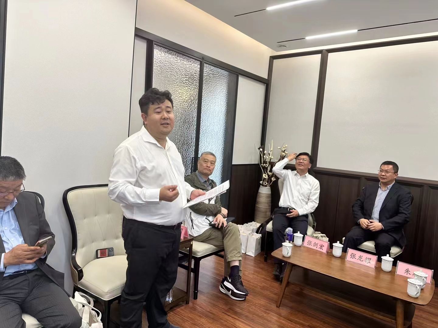 与会代表围绕论坛主题展开讨论。张剑宏作会议总结。他介绍了苏州校友会的三大功能——“桥梁”“平台”和“讲好故事”。他表示,近期苏州校友会金融行业分会的成立,进一步拓宽了校友沟通的桥梁和平台,将有利于加深从事金融的校友之间的联系和交流,也有助于凝聚金融力量服务学校学科发展,期待苏州校友分会发挥桥梁纽带作用,为金融学子们提供就业、实习实践机会,促进母校金融科技学科发展与人才培养。
