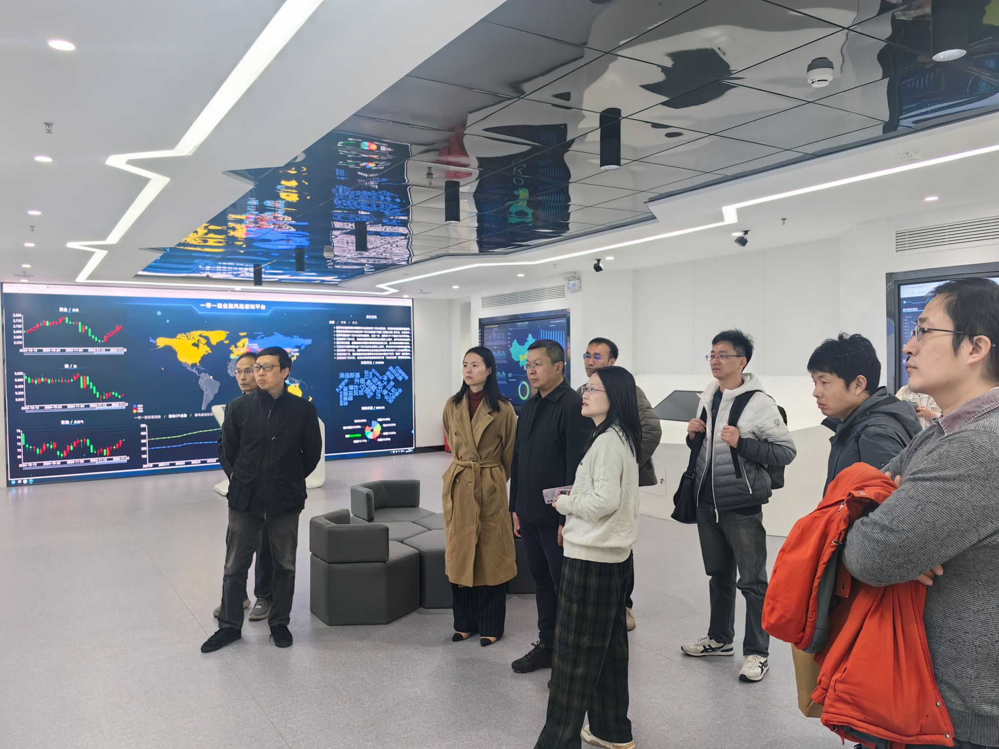 首先,在苟琴副院长的陪同下,张龙耀院长一行参观了中央财经大学国家金融安全工程中心,该中心以其卓越的科研实力、前沿的研究方向以及丰富的实践经验,为调研团队提供了宝贵的学习机会。