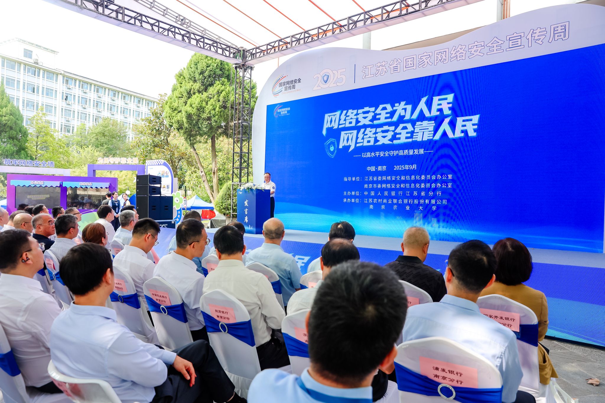 9月19日上午,2025年江苏省国家网络安全宣传周“金融日”活动在我校卫岗校区成功举行。活动由江苏省委、南京市委网信办指导,中国人民银行江苏省分行主办,伟德bv1946官方网站与江苏农商联合银行联合承办,聚焦“以高水平安全守护高质量发展”主题,通过政校企协同创新模式打造沉浸式金融安全教育课堂,为全省高校师生及公众筑牢网络安全屏障。我校党委常委、副校长单正丰,中国人民银行江苏省分行党委委员、副行长陈涤非,江苏农商联合银行党委委员、首席信息官李健等出席本次活动。