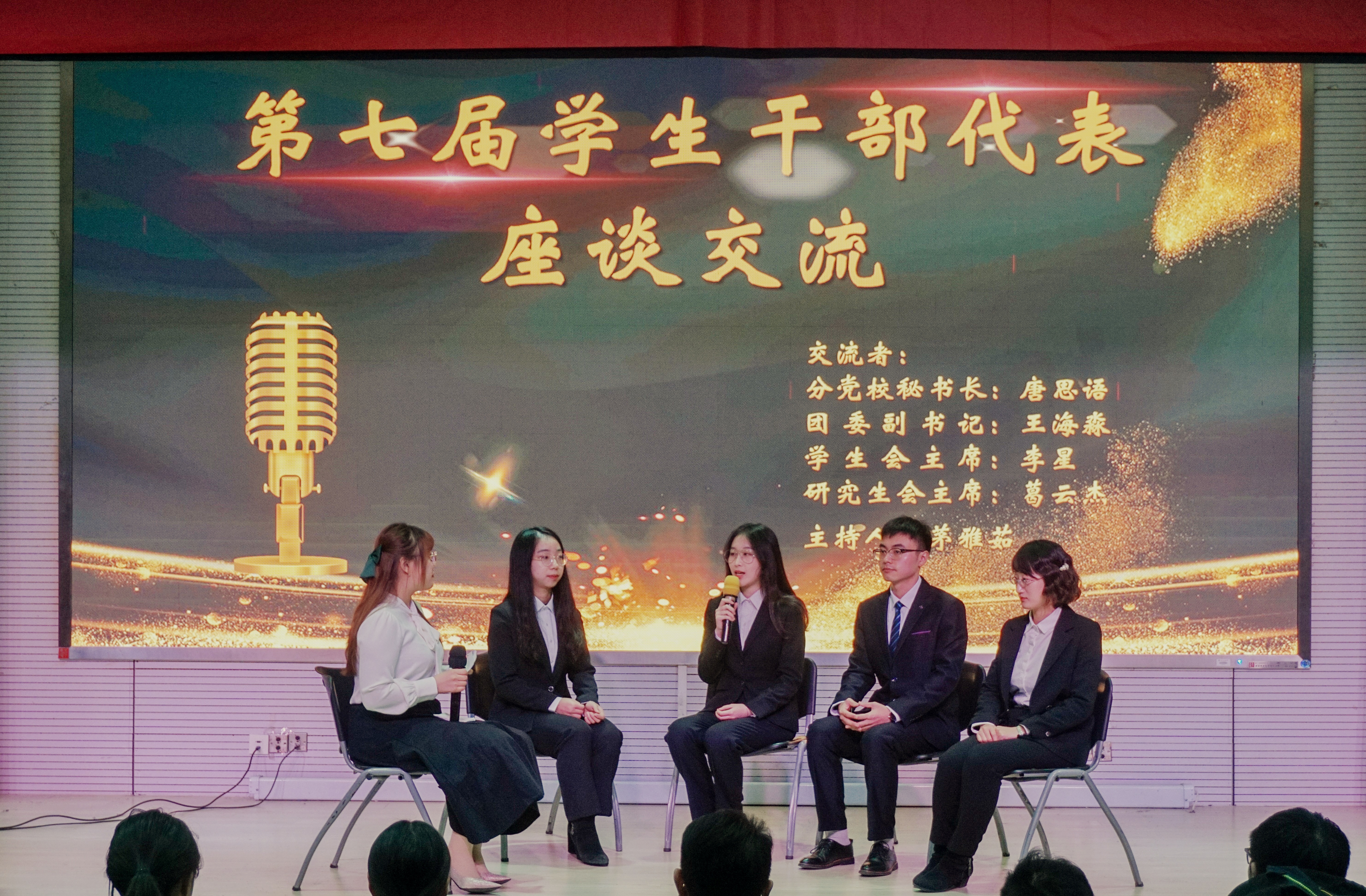 首先,学生干部代表进行座谈。第七届分党校秘书长唐思语、团委副书记王海淼、学生会主席李星和研究生会主席葛云杰,分别从时间管理、公文撰写、组织协调、凝聚力打造等方面分享了自己任职以来的感受和收获,鼓励在场的每一位同学不忘初心理想,精诚团结,努力创造更辉煌的成绩。座谈会结束后,主持人宣读2019-2020学年本科生、研究生会学生骨干名单,并对2019-2020学年本科生、研究生优秀学生干部和优秀部门进行表彰。