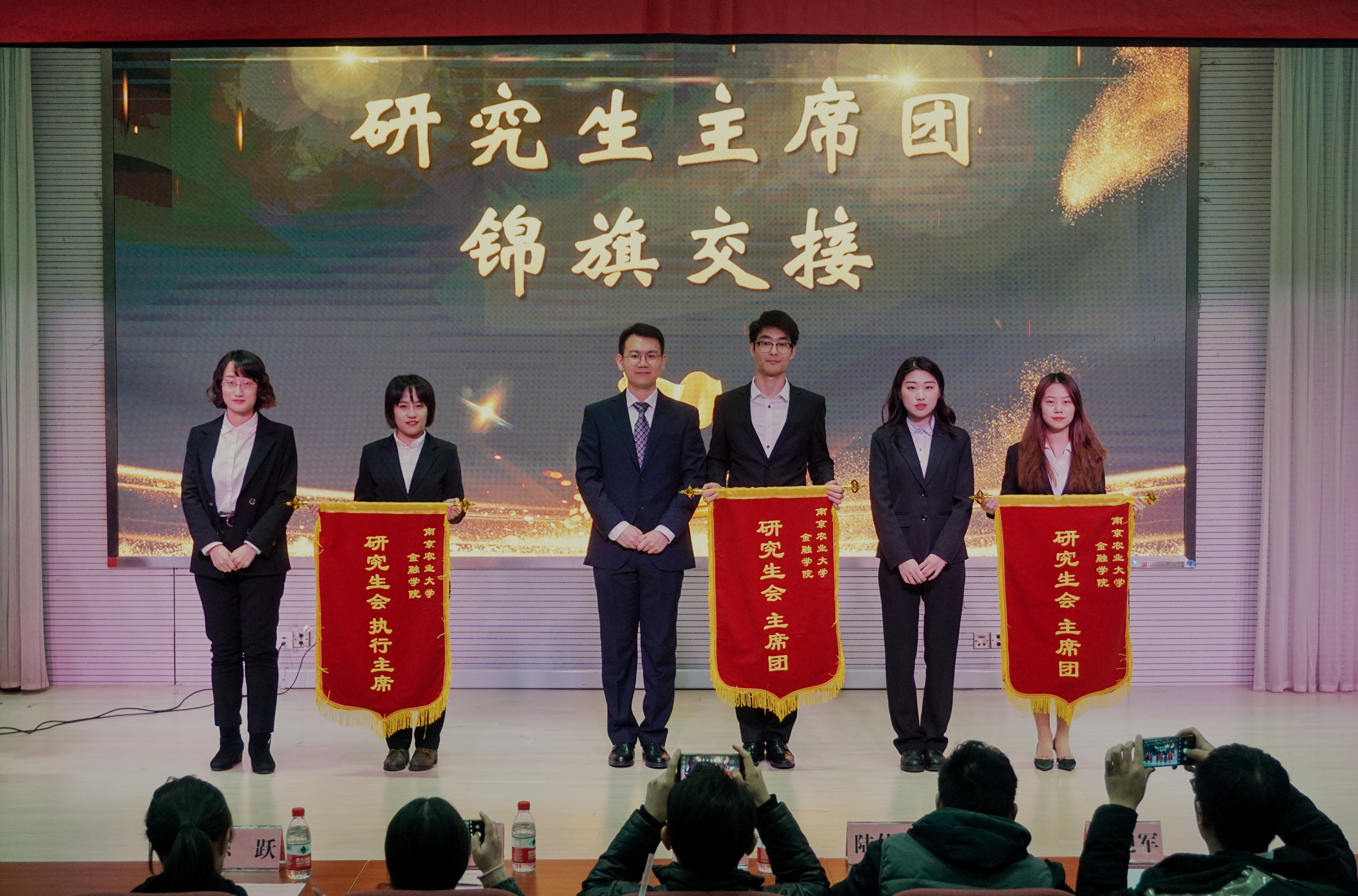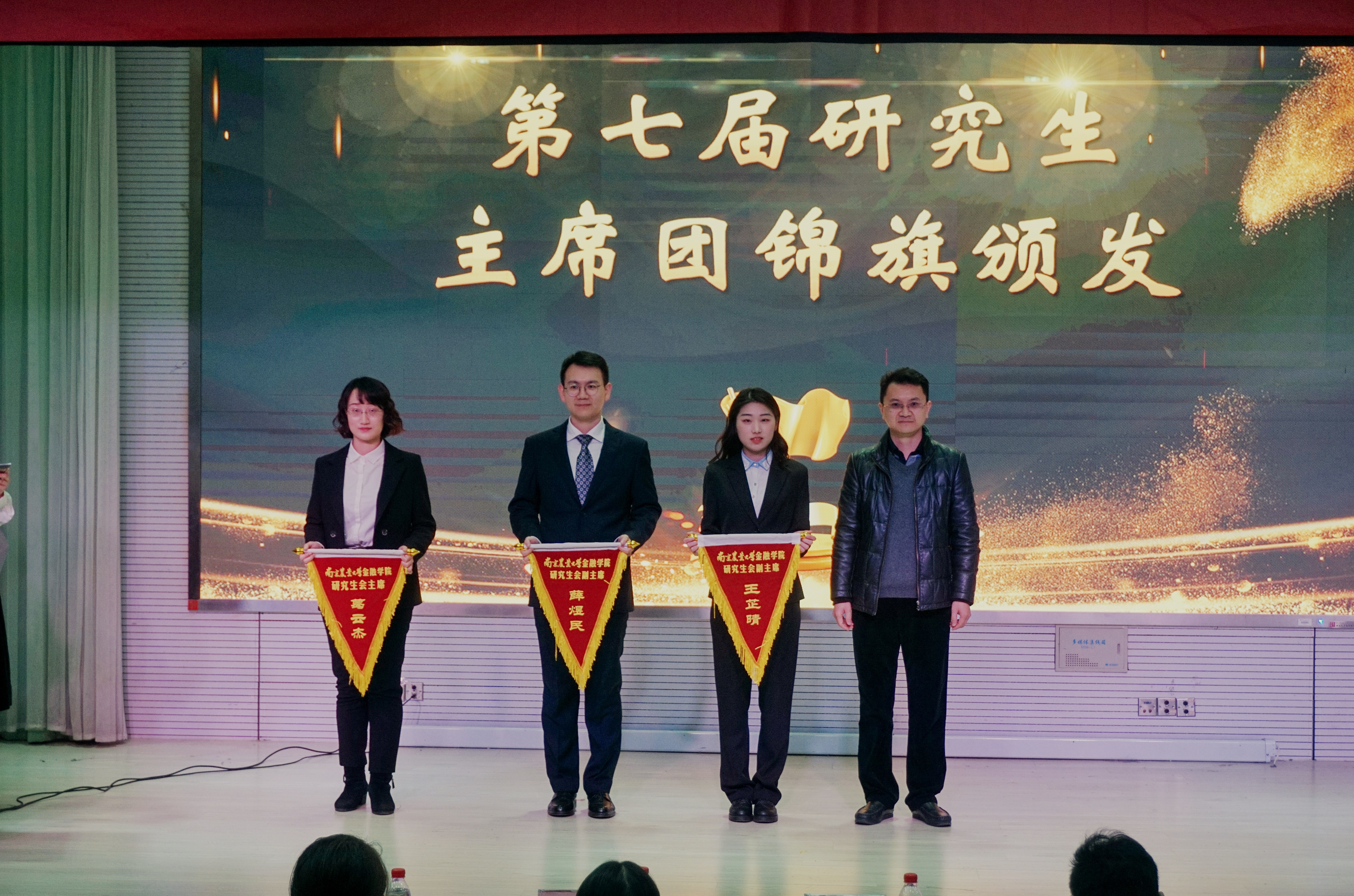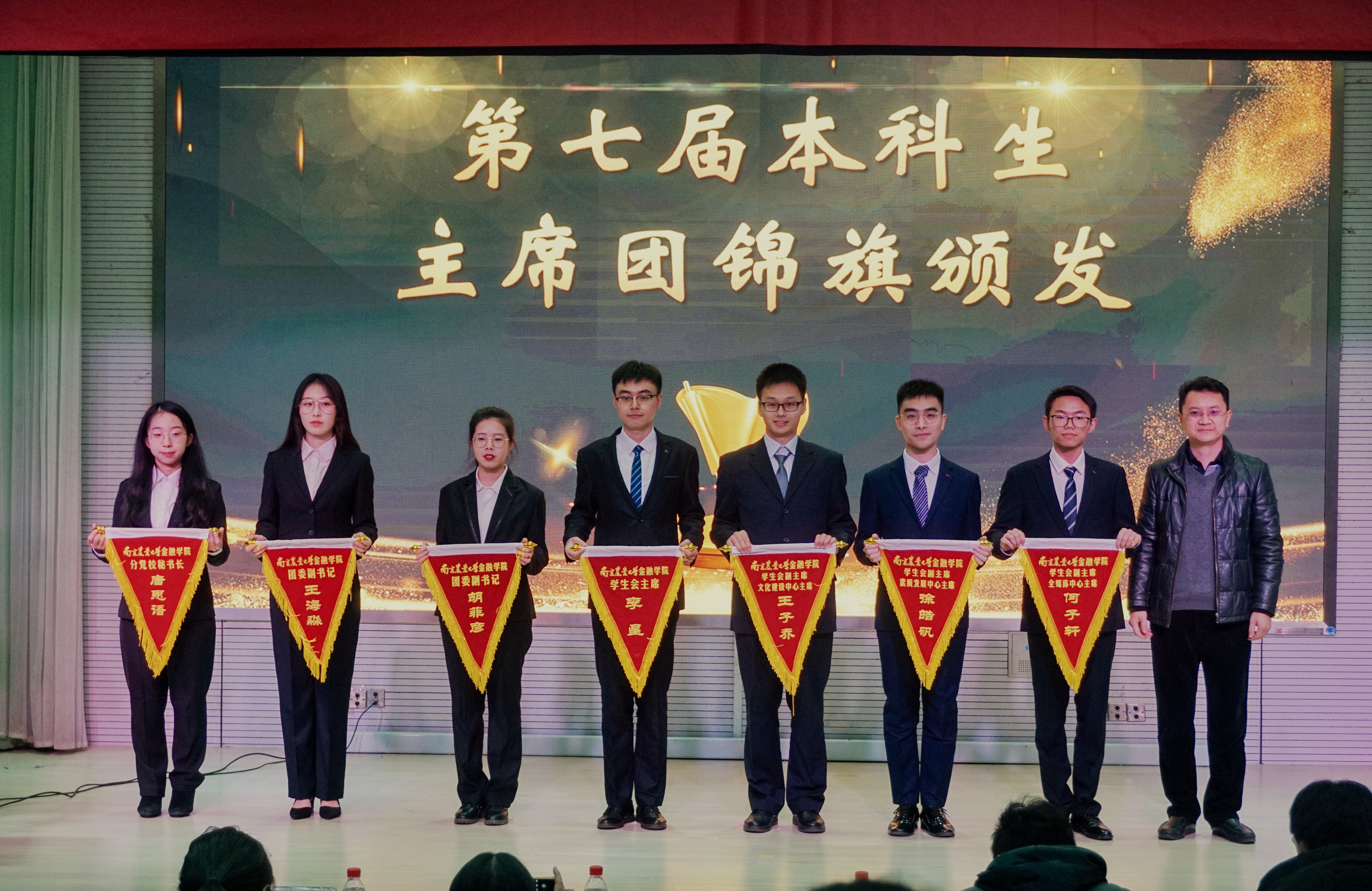 接着,大会进入到授旗仪式环节。李日葵副书记为第七届主席团授予荣誉锦旗,同时,第七届主席团在职务锦旗上慎重签名,并将锦旗郑重的传递给第八届主席团成员,勉励他们继承和发扬学院学生组织的光荣传统,奋勇拼搏,砥砺前行。